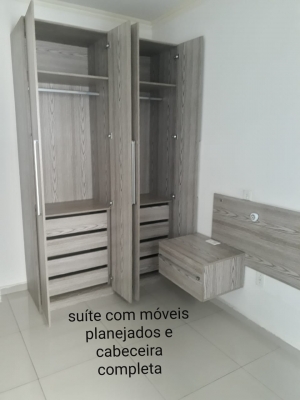 02 dormitórios, sendo 01 suíte, os 02 banheiros com box blindex + gabinete